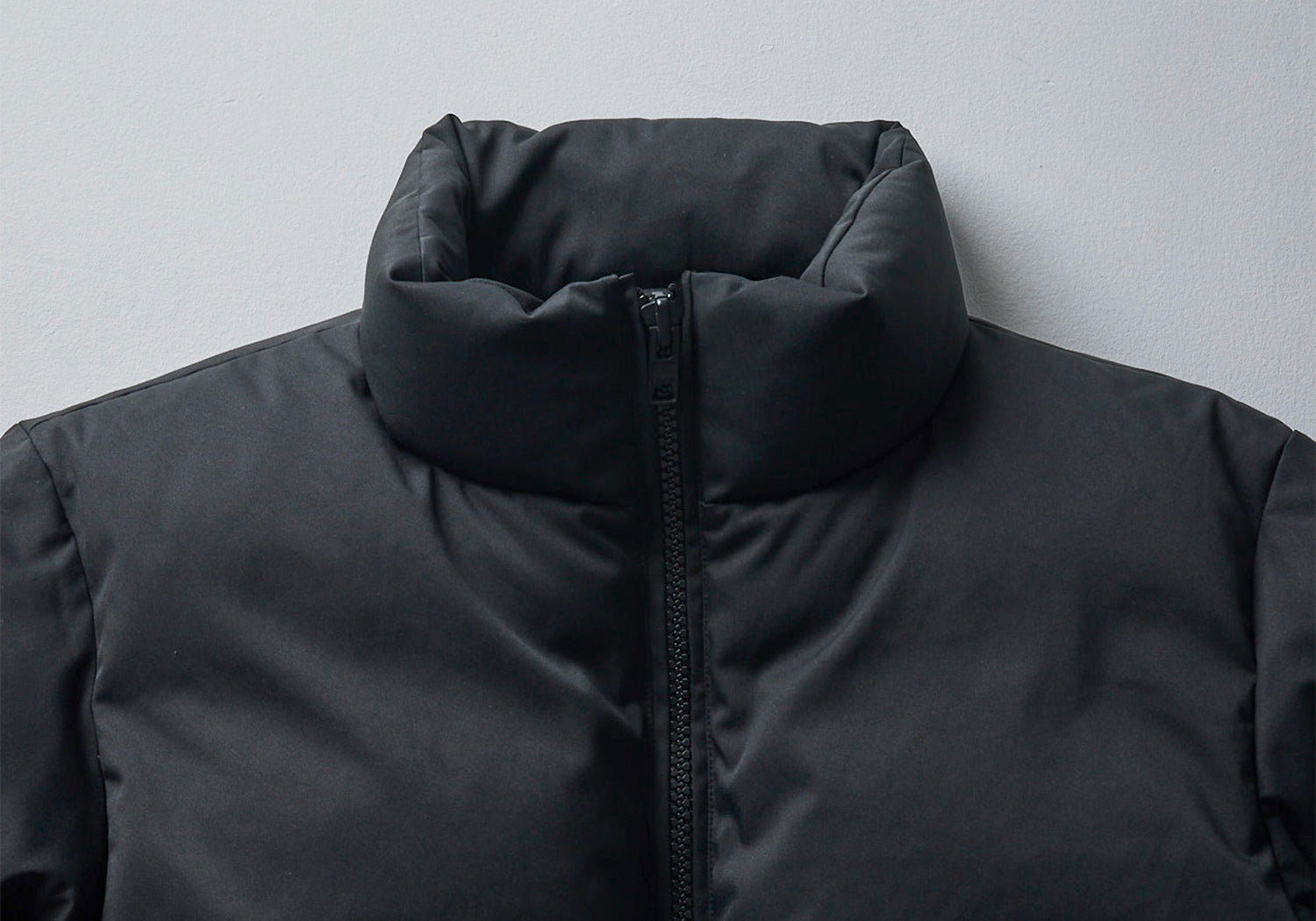 表地・ダウンパック・ダウン・裏地の4層構造に仕立てることで、見た目のスマートさを損なわず、羽毛の飛び出しやダウンの偏りを防ぎます。