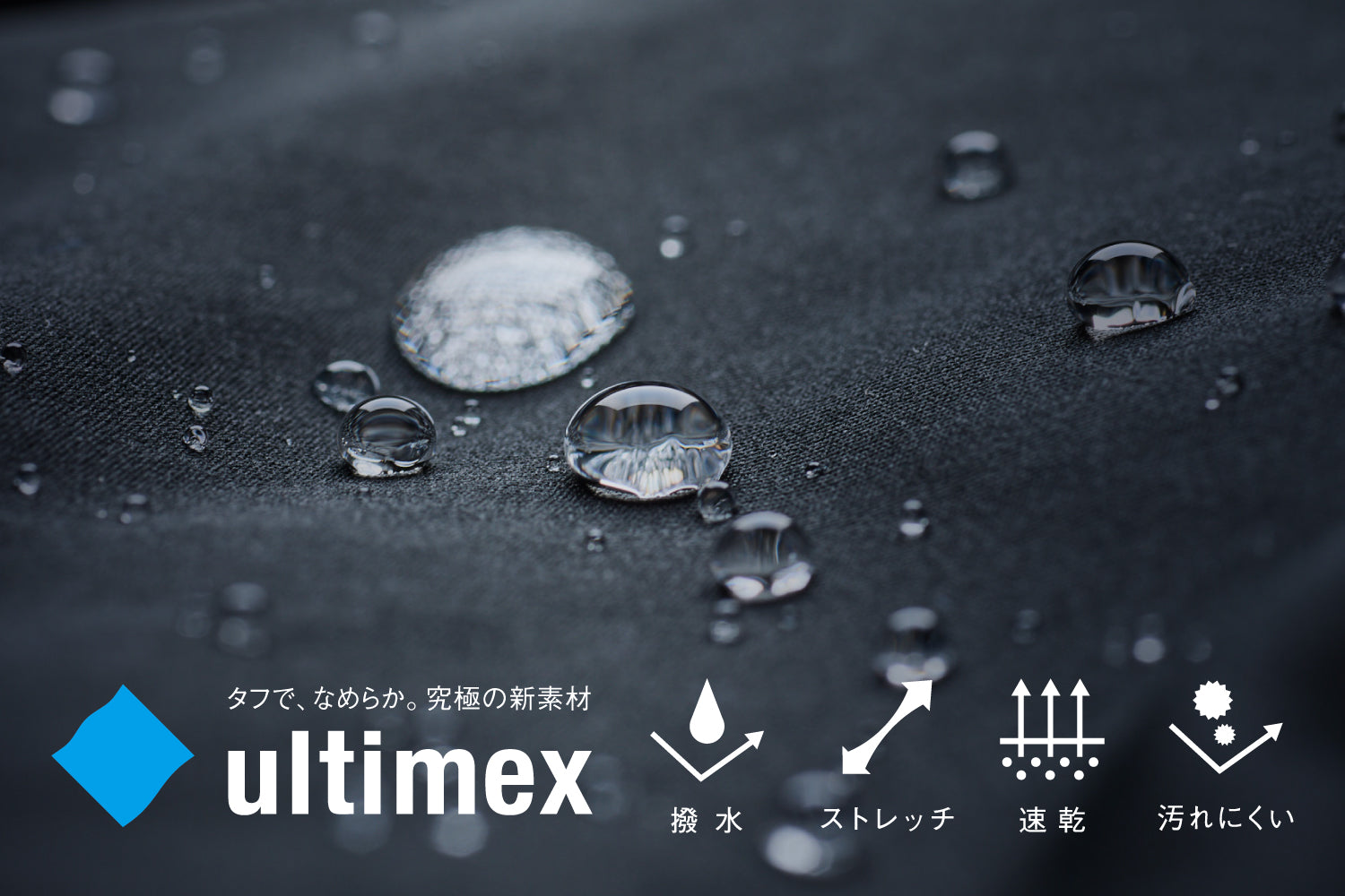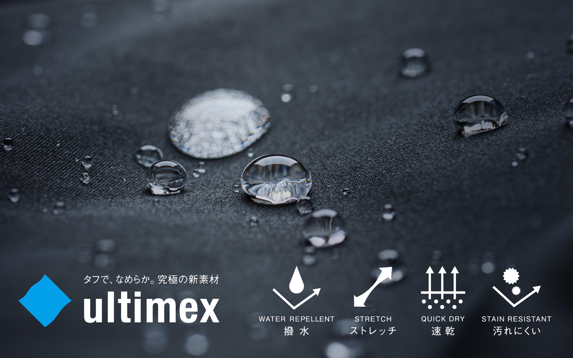 “ultimex” は、約2年の歳月をかけて開発された、ストレッチ・撥水・速乾・透湿に優れたMacqloの独自素材です。