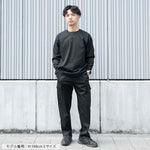 体のラインを拾いにくい、リラックス感のあるボックスシルエット。袖口のみより伸縮性の高い異素材を使用。着脱を楽にする肩口ファスナー付き。